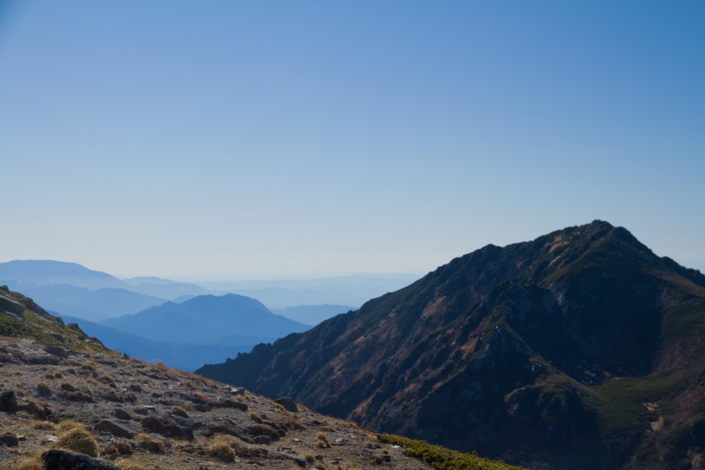 三ノ沢岳の背後に位置する山々が水墨画のようだ。